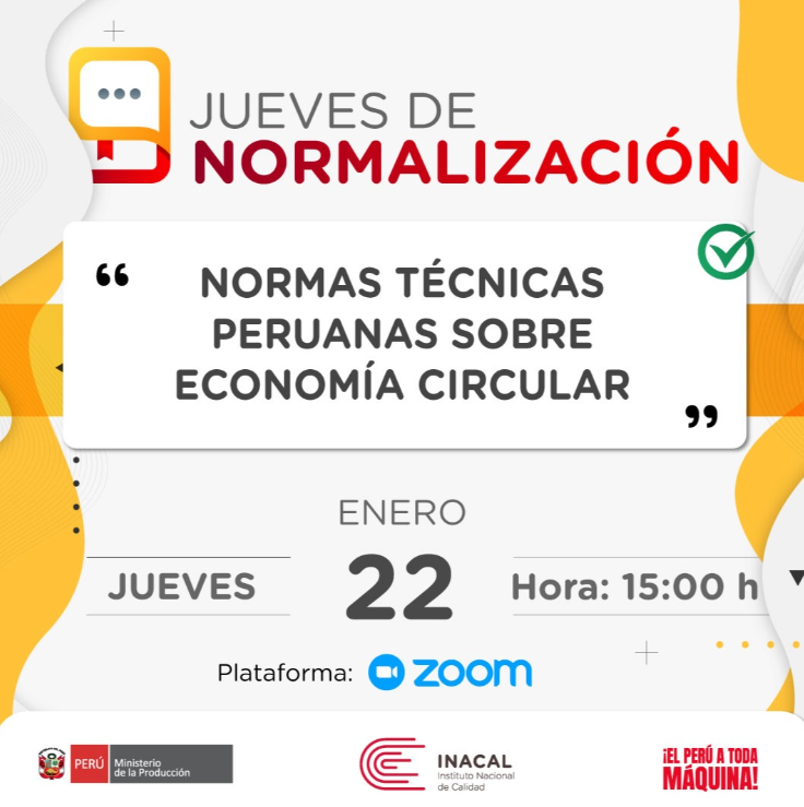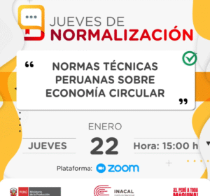El Inacal te invita a una nueva edición del #JuevesDeNormalización, dedicada a las Normas Técnicas Peruanas sobre economía circular.
